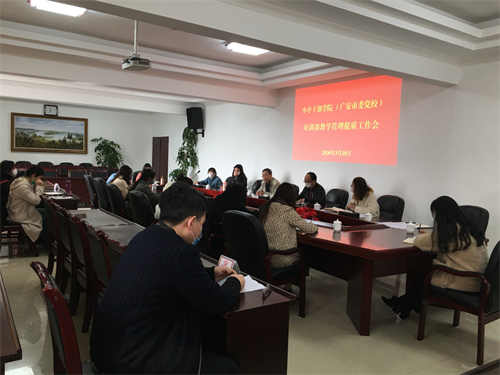 为全面贯彻落实《小平干部学院(广安市委党校)关于成立院(校)提质工作领导小组的通知》小平干院[2020]15号文件精神,深化教学管理提质工作。3月10日,专职院(校)务委员蒋树刚主持召开了教学管理提质工作会 ,工作组的全体成员参加了会议。