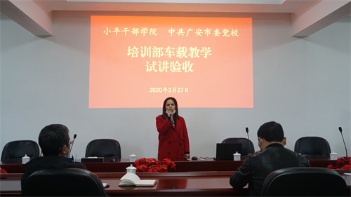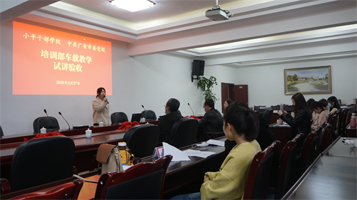 试讲结束后,蒋校委和唐部长进行了集中点评。蒋树刚院(校)委在点评中肯定了培训部近期在教学组织管理提质工作中的努力,并指出教学助理作为一线带班老师,要进一步提高站位、用心积累,将车载教学当做宣传广安、推介广安的好机会,要反复打磨、互讲互评、取长补短,采取多种教学形式吸引学员、讲出特色。唐华锋部长对试讲的6位老师进行了逐一点评,并强调在车载教学中须做到教学资料要丰富、讲解思路要清晰、讲解重点要突出、讲解语言要精练。