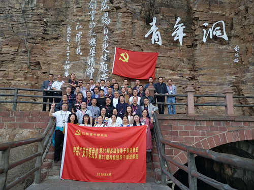 4月16日下午,20期县干班、31期科干班学员在青年洞前合影,此次异地教学,两个班学员纷纷表示收获颇丰。
