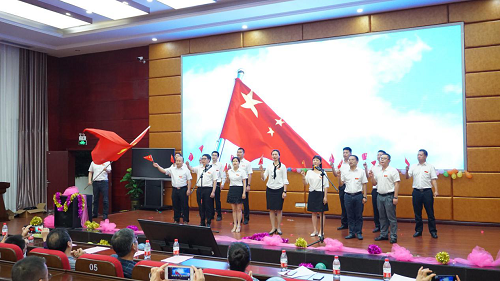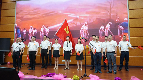 第31期科级领导干部进修班3组带来的红歌联唱《歌唱祖国》《军民大生产》《走向复兴》
