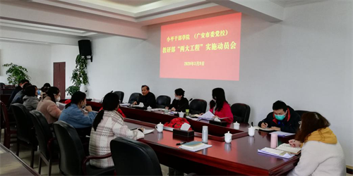 3月9日下午,教研部组织教研人员召开“两大工程”实施动员会?;嵋橛山萄胁坎砍ず褐鞒?,副院(校)长蒲丽娟出席会议并讲话。