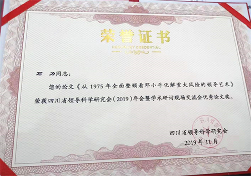 学院教师石力的论文获四川省领导科学研究会(2019)年会优秀论文奖