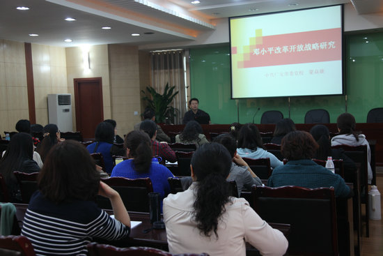 10月24日下午,广安全国新时期党性教育特色基地联席会议办公室主任、市委党校常务副校长、市行政学院常务副院长、市社会主义学院副院长蒙焱雄同志应邀为特色基地“南充市委党校妇女干部班”学员作了题为“邓小平改革开放战略研究”的讲座。
