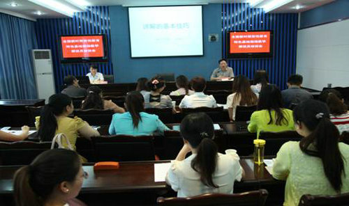邓小平故里管理局毛玉娟同志对参训学员进行了专题授课。她全面而系统地讲授了解说员基本素质、基本礼仪、解说技巧、安全应急处置方法、法律法规等知识,同时,就如何站、坐、走、蹲等常规动作进行了示范,并与参训学员现场互动。