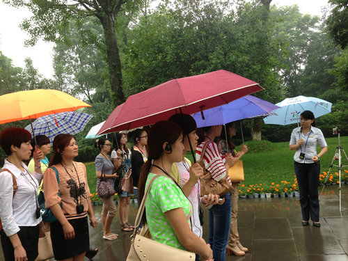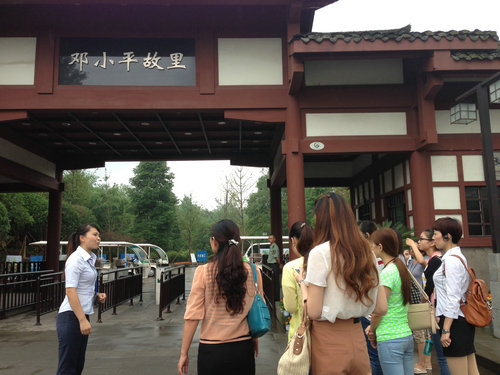 下午,全体参训人员冒雨赴邓小平故里纪念园开展了实地解说示范教学活动。授课老师声情并茂的解说、自然大方的教态、始终洋溢着的微笑,深深感染了参训学员,振奋了精神状态,增强了解说自信,成为邓小平故里纪念园中一道亮丽的风景线。