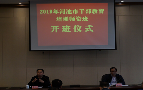 2019年11月13日,2019年河池市干部教育培训师资班在小平干部学院顺利开班。河池市委党校副校长覃英学同志出席开班仪式并作动员讲话。小平干部学院副院长蔡良志主持开班仪式并致辞。