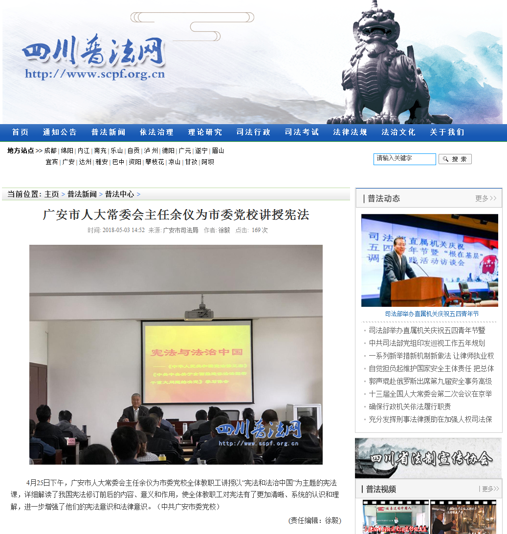 【四川普法网】广安市人大常委会主任余仪为市委党校讲授宪法