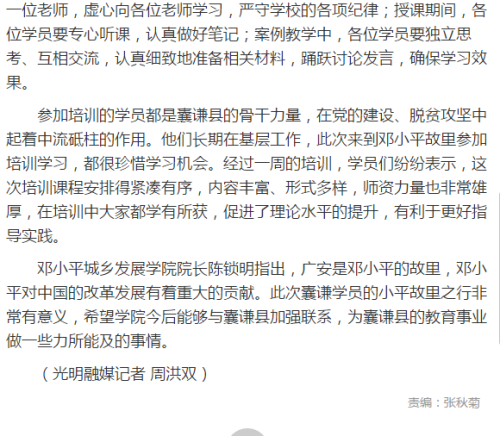 【广安日报】半年培训2.3万人次 小平干部学院培训规模位居全国同类干部院校前列
