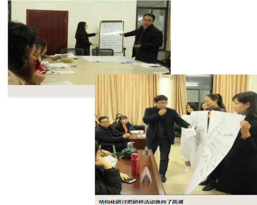 50位班主任分成5个小组,分别以“班主任如何提升自身素养”“班主任如何做好学生工作”“班主任如何做好同家长的沟通工作”“班主任如何协调好与科任老师之间的关系”“班主任如何做好学生的德育工作”等为主题,展开了结构化研讨。“培训催化师”先给学员们介绍了结构化研讨的特点和注意事项:所谓结构化研讨,就是采用“结构化”的方法,把人们思维的不同阶段划开,克服综合性思维的影响,并保证成员间的平等;用“建设性”的强制规定保证小组成员积极参与讨论,激发思想,使讨论始终保持正向。 大部分学员都是第一次体验这种研讨方式,结合班主任工作中的热点和难点问题,各小组都展开了激烈的讨论。他们分工合作,把所列出的问题用鱼骨图的方式进行汇总和分析,最后各小组代表在全班进行分享。