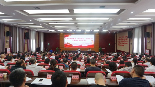 为扎实推进“不忘初心、牢记使命”主题教育活动,由广安市政协党组举办的全市政协委员集中学习会在小平干部学院开班。9月28日下午,市委书记李建勤出席集中学习会并作辅导报告。市政协党组书记、主席肖雷主持报告会。全市政协委员、市政协机关全体干部职工近400人现场聆听报告。