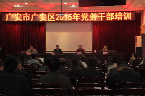 2015年11月24日,广安区党务干部培训班正式开班了。此次培训开班式由区直机关工委书记赵建平主持。区委组织部副部长吕沁洪代表陈松柏部长作了重要讲话、区委党校常务副校长刘建忠对本此培训的课程设置进行了说明并强调了培训纪律。此次培训旨在贯彻落实党的十八届五中全会精神,加强党员干部廉洁自律建设和党的执政能力建设,全面提高基层党务干部思想素质和业务能力。