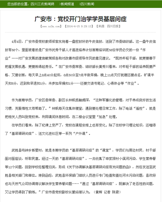 【四川三农新闻网】广安市:党校开门治学学员基层问症