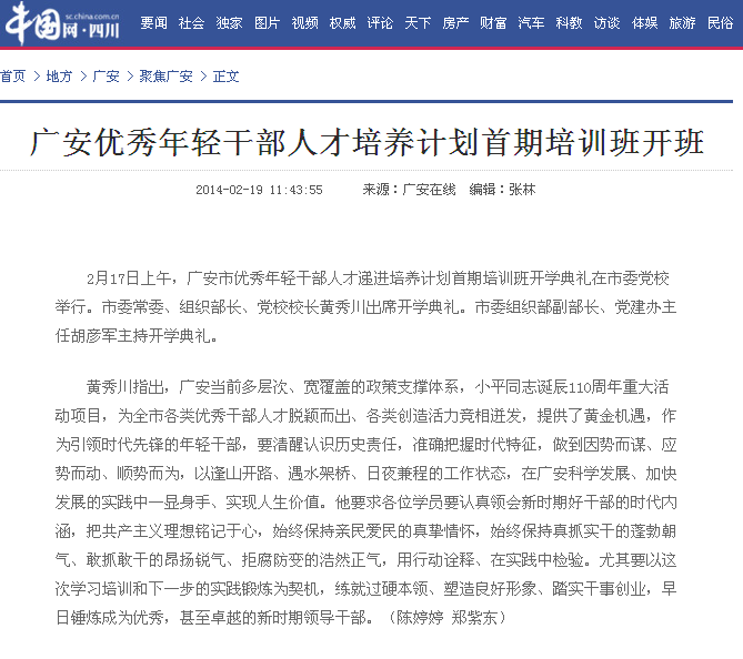 【中国网.四川】广安优秀年轻干部人才培养计划首期培训班开班