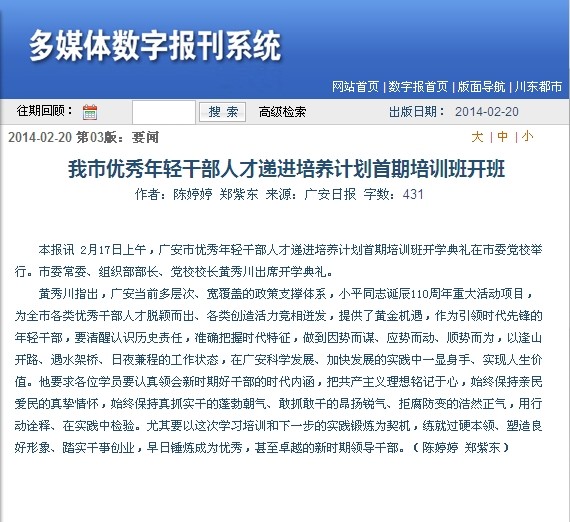 【广安日报】我市优秀年轻干部人才递进培养计划首期培训班开班