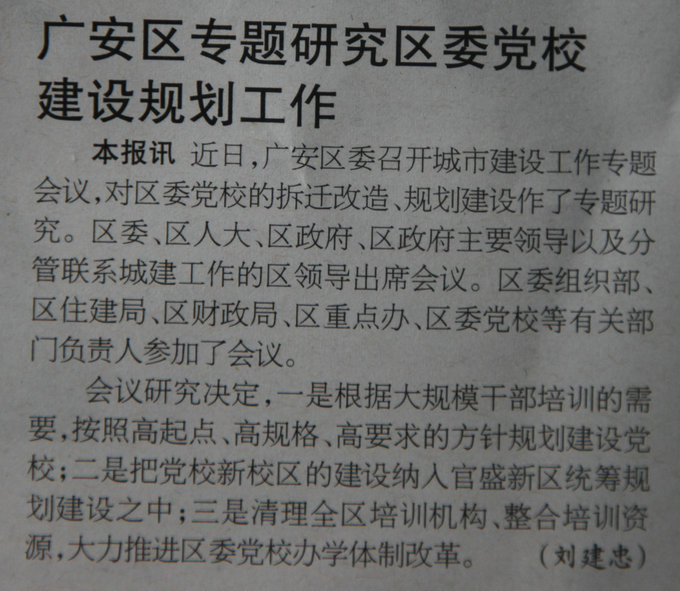 【四川党校报】广安区专题研究区委党校建设规划工作