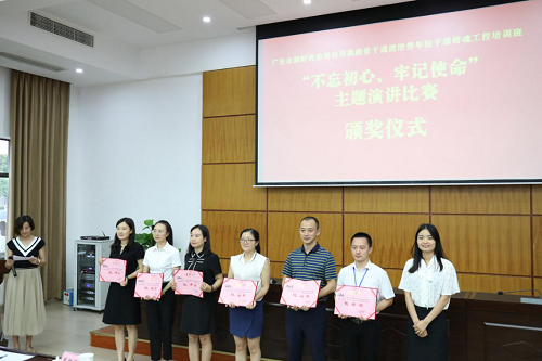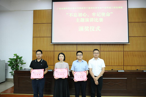 为庆祝中国共产党成立98周年,回顾党的光辉历程,讴歌党的丰功伟绩,激励广大青年干部立足新时代、勇担新使命、展现新作为,7月15日下午,广安市新时代治蜀兴川执政骨干递进培养年轻干部铸魂工程培训班在市委党校学术厅举办“不忘初心、牢记使命”主题演讲比赛。