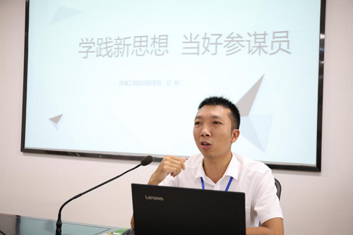 培训班学员、邻水县委政策研究室主任甘林以“学践新思想,当好参谋员”为主题,结合实际工作分享了学习贯彻习近平新时代中国特色社会主义思想的心得体会。他表示,习近平新时代中国特色社会主义思想是马克思主义中国化最新成果,系统回答了新时代坚持和发展中国特色社会主义的总目标、战略布局、发展方向、政治保证等基本问题,宣示了新时代的到来,对未来做出了战略安排。作为党委办公室的一名年轻干部,一定要做信念过硬的参谋员,饱含家国情怀,秉持执着追求,敢于奉献牺牲;要做政治过硬的参谋员,修好为政之德,保持政治定力,对党绝对忠诚;要做责任过硬的参谋员,坚持党的原则第一,党的事业第一,人民利益第一,正心诚意担当作为;要做能力过硬的参谋员,勤学善思用理论武装头脑,勤练笃行在实践中锤炼本领;要做作风过硬的参谋员,扎根基层服务人民,廉洁自律守住底线。深刻的学习体会、真挚的情感表达,引起了学员们的强烈共鸣。