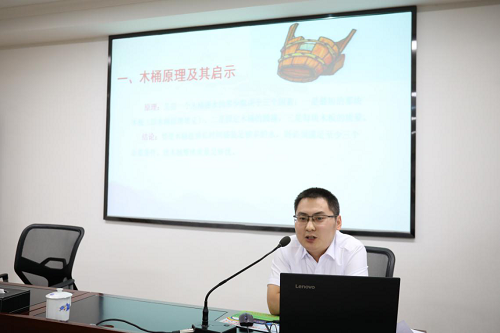 培训班学员、市人大研究室综合科科长张焱秋从新木桶原理视角分享了对坚定制度自信思想的思考。他认为,制度自信思想是 “四个自信”的重要组成部分,也是我们党推进中国特色社会主义制度建设的重要遵循。一个国家、一个民族要想在历史的逻辑中前进,在时代的潮流中发展,在世界的范围矗立,必须要有一种能够同时具备“坚强有力的领导核心”、“完善的治理体系”和“代表最广大民众意愿”的政治制度安排,这就要求我们做到坚持党的领导,坚持发挥制度优势,坚持全面依法治国,坚持以人民为中心。