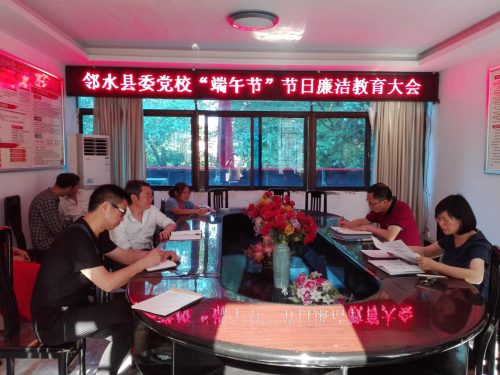 5月27日,邻水县委党校“端午节”节前召开廉洁教育大会,全体教职工参加了会议。