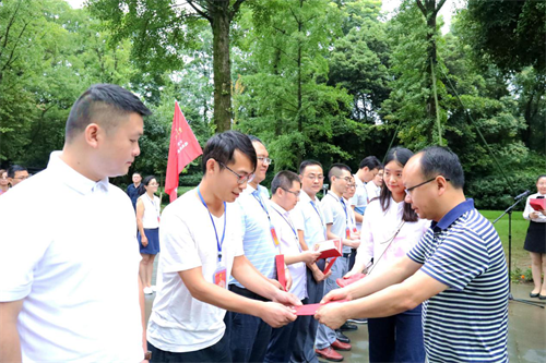 学员们排着整齐的队伍,怀着激动的心情,来到小平故居开展活动,向小平铜像敬献花篮、鞠躬致意,缅怀一代伟人的丰功伟绩,表达对小平同志对深切怀念之情。面对鲜红党旗铮铮誓言,15名共产党员学员还庄严地举起右手,重温入党誓词,班主任老师还为他们颁发了政治生日贺卡。