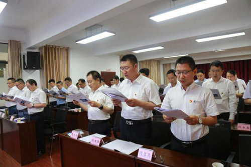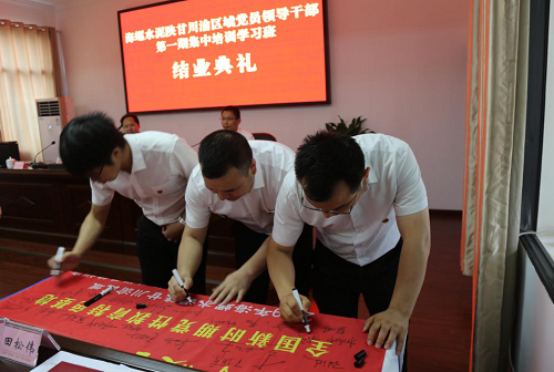 为深入学习习近平新时代中国特色社会主义思想和党的十九大精神,贯彻落实海螺水泥集团公司年度工作会议和股份党建工作会议要求,开展好“不忘初心,牢记使命”主题教育活动,加强党的思想建设、组织建设和作风建设,强化党员意识,增强政治素质,提高工作能力,努力建设“四强”党组织和“四优”党员队伍,海螺水泥陕甘川渝区域2019年第一期党员领导干部培训班于6月9日在小平干部学院开班。开班仪式由川渝区域党建纪检组长沈永同志主持,川渝区域副主任张来辉、小平干部学院副院长蔡良志及陕甘川渝区域各公司的党员领导干部共32人参加了开班仪式。
