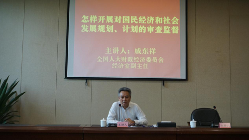 全国人大财政经济委员会经济室副主任戚东祥讲授《怎样开展对国民经济和社会发展规划、计划的审查监督》