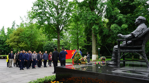 参训学员来到小平铜像广场敬献花篮,并在这里重温入党誓词,牢记入党初心。