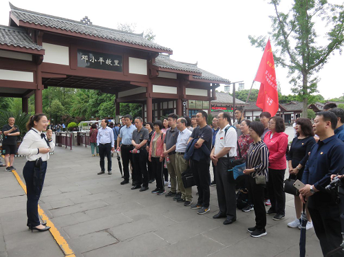 中共广安市委党校教师张丽丽在邓小平故居为学员导学