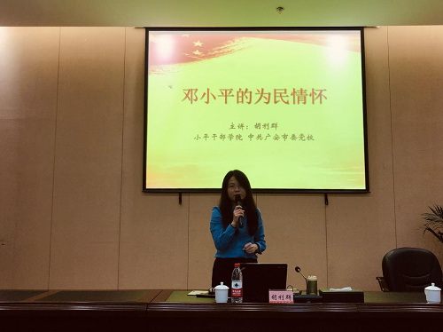 中共广安市委党校教师袁琳为学员进行邓小平名言微解读“我是中国人民的儿子,我深情地爱着我的祖国和人民”。