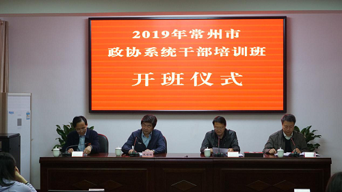 4月15日上午,江苏省常州市政协系统2019年干部培训班在我???,出席开班式的领导有常州市政协党组副书记、副主席张耀钢,常州市政协副秘书长孙如山,广安市委党校常务副校长蒙焱雄。常州市政协秘书长、党组成员周效华出席并主持仪式。培训班38名学员参加了开班仪式。