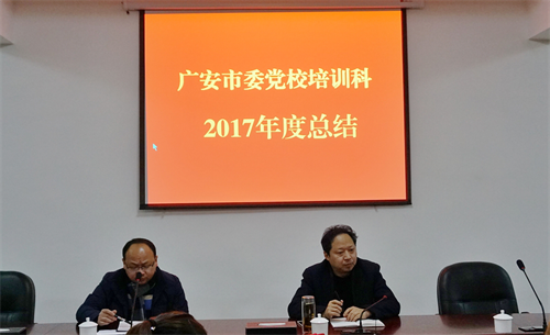 2月1日下午,培训科召开了2017年度部门工作总结会。中共广安市委党校校务委员、广安市行政学院副院长蔡良志,培训科科长唐华锋出席会议。培训科在校教学助理均参加了会议。