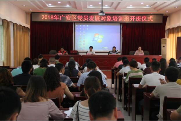 6月19日上午, 2018年度广安区党员发展对象培训班开班仪式在区委党校顺利举办,来自全区各行业的70余名入党积极分子如期参训