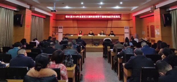 11月27日,邻水县2018年县直机关副科级领导干部培训班在中共邻水县委党校开班。县委党校党委书记、常务副校长冯川主持开班典礼,县委组织部副部长、县人才办主任鲁四平出席开班典礼并作讲话,党校副校长颜姗、邓万琼出席开班典礼