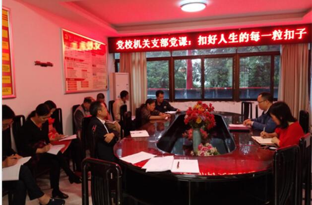 9月30日,国庆中秋放假的前一天,邻水党校机关支部全体在家党员在二楼会议室聆听了党委书记、副校长冯川讲党课:扣好人生的每一粒扣子,保持生命的亮色
