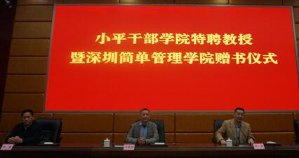在这橙黄橘绿、梅苞待放之时,广安市国资委和小平干部学院邀请到深圳简单管理学院院长冯祯祥博士来院授课。在授课前,冯祯祥代表深圳简单管理学院向小平干部学院赠送书籍,小平干部学院将冯祯祥博士聘为小平干部学院特聘教授。