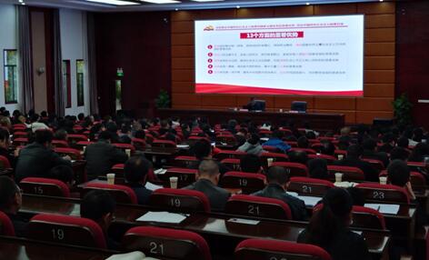 11月27日下午,学习贯彻党的十九届四中全会精神四川省委宣讲团宣讲报告会在小平干部学院举行。四川省委宣讲团第六分团负责人、省委党校(行政学院)常务副校(院长)李新作宣讲报告。市直机关各部门、市属国有企业副县级以上干部,各园区党工委、管委会班子成员,市级民主党派和无党派人士代表,广安军分区中层以上干部以及市委宣讲团成员参加报告会。