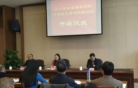 10月24日,2018年金堂县离退休干部党支部书记培训班在院校开班。金堂县委组织部副部长、老干部局局长李梅出席开班式并讲话。邓小平城乡发展学院院长陈锁明出席开班式。广安市委党校培训科科长唐华锋主持开班仪式。金堂县共49名离退休干部参加开班式。