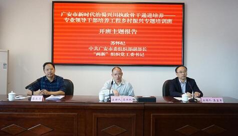 为认真贯彻落实习近平新时代中国特色社会主义思想、党的十九大和习近平总书记对四川工作系列重要指示精神,推动中省乡村振兴大会、省委十一届三次全会和市委五届六次全会各项决策部署落地落实,根据省委统一要求,经市委审定同意,广安市新时代治蜀兴川执政骨干递进培养--专业领导干部培养工程乡村振兴专题培训班于10月11日上午在我校顺利开班。