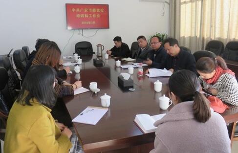 新学期伊始,为振奋精神,进一步抓好培训工作,3月9日下午,培训科在党校综合楼三会议室召开了新学期部门工作会。广安市行政学院副院长蔡良志、培训科科长唐华锋参加会议并对新学期工作作出安排。