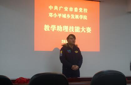 2018年1月3日,为提升教学助理现场导学能力和综合素养,本着相互学习、共同提高的目的,邓小平城乡发展学院、广安市委党校教学助理技能大赛在院校一会议室举行。广安市行政学院副院长蔡良志、培训科科长唐华锋和教研部在校专职教师出席大赛并担任评委。