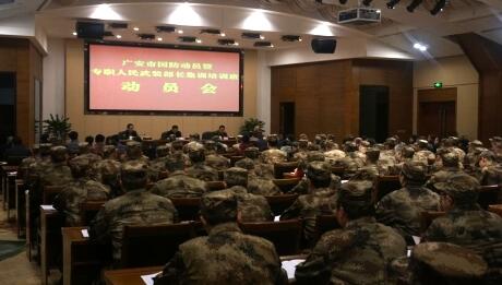 为深入学习贯彻习近平新时代中国特色社会主义思想和新时代党的强军思想,不断加强我市国防后备力量建设,完善我市国防动员体系,经市委市政府同意,广安市国防动员暨专职人民武装部长集训动员大会于1月16日上午在院校举行。